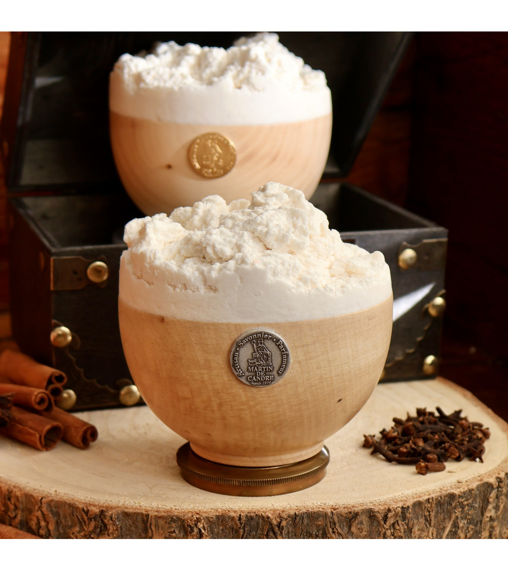 Magellan" Wooden Bowl Shaving Soap is an exceptional product with a warm, spicy fragrance inspired by the olfactory treasures of the Indonesian islands.